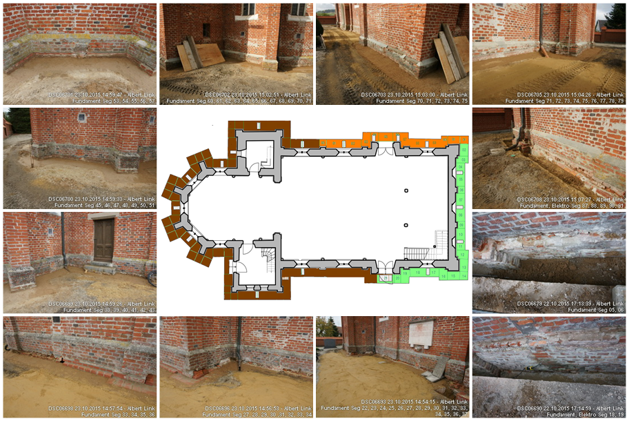 orange:= Lehmschlag zum Teil eingebracht, Mauerwerke fertig