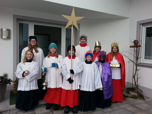 Auch im Auer Marktgemeindeortsteil Haslach waren heute die Ministranten zum Dreikönigssingen 2015 unterwegs, haben den Segen in die Häuser getragen und für die Mission gesammelt.