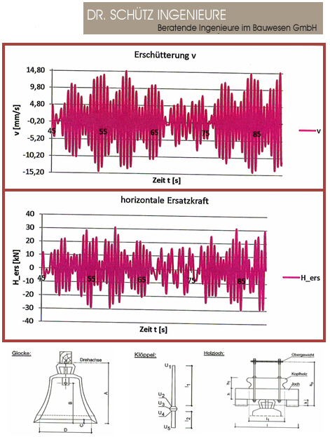 Maßnahme: Messung der Turmschwankungen, Neuberechnung des Schwingungsverhalten der Glocken und Benennung der baulichen Maßnahmen